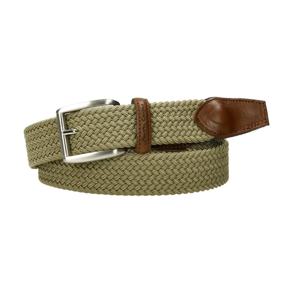 Tenemos este cinturón elástico trenzado también en un verde suave precioso, hecho en España. Su secreto es la goma elástica de calidad italiana con rayón, por eso no pierde forma. Y lo mejor, sin agujeros, ajustándolo a tu medida perfecta en cualquier momento. Ideal para esos días en que uno se pasa un poco con la comida, ¿verdad? Cómodo, versátil y siempre en su sitio.