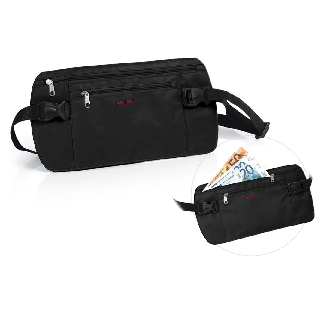 Riñonera de viaje totalmente plana de la marca Gabol. Fabricada en nylon con correa ajustable y de goma elástica para que no se aprecie que llevas nada debajo de la ropa.